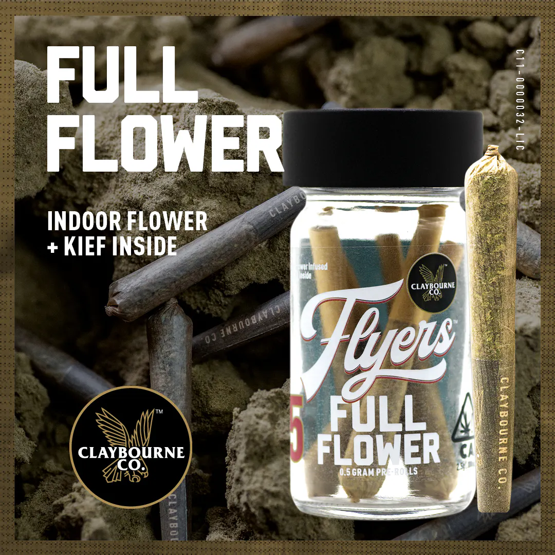 Crafted with Claybourne’s signature quality, Flyers pre-rolls are made with premium indoor flower and rolled with kief to enhance your inbound experience. Each glass tube comes with five (5) half gram, strain specific, pre-rolls without over the top lab-made extracts, distillates, or oils. They're naturally infused with kief, so you can fly higher knowing your pre-rolls are unprocessed and rolled straight from the plant into natural, unbleached papers, totally chlorine free and calcium carbonate free. Enjoy the smooth burn and full flavor of Claybourne Flyers. Always Ready. _____ Diamond Infused Flyers are strain specific pre-rolls optimized for Plus Ultra Potency and Maximum Lift. These ultra potent pre-rolls are made from Premium Indoor Full Nug Flower and infused with crushed, pure THCa Diamonds and rolled in a Half Gram pre-roll. Available In: (1g) 2-Packs & (2.5g) 5-Packs. 100% Indoor Grown Full Nug Flower Infused With Crushed THCa Diamonds .5g Size Pre-Rolls Team Note: “Buckle-up Buttercup, these fn hit.”