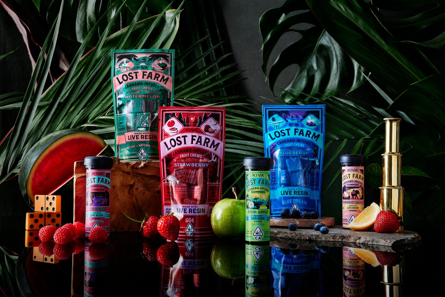 Strain-specific, plant-based 10mg THC edible gummies and chews infused with 100% live resin and solventless live rosin for a distinctively full spectrum, true-to-the-plant-high Chews and gummies are two highly popular ways of consuming cannabis, and Kiva Confections is proud to offer both via its Lost Farm brand. The name of this brand is derived from the search for seemingly unattainable, mythical things such as the Fountain of Youth or the Kingdom of Atlantis. Lost Farm represents more of a belief or conviction than a physical location. Accordingly, the logo for Lost Farm is a compass, which reflects the idea of exploration, which is a key aspect of the cannabis consumption experience.
