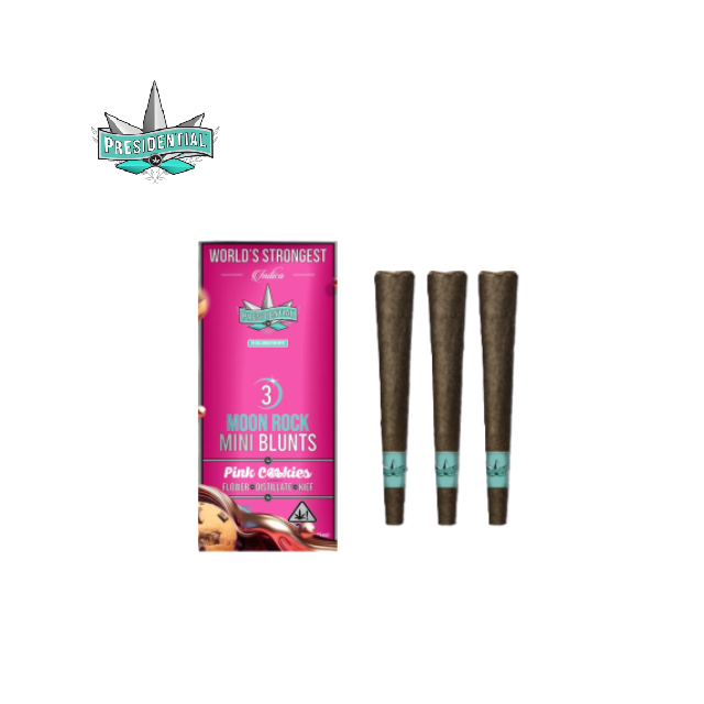 Your Presidential moonrock blunt consists of top shelf organic flower INFUSED with premium THC distillate and then coated in the highest quality kief. Presidential’s innovative proprietary infusion process enables them to permeate the flower all the way to the stem! The moonrocks are ground and wrapped in a 100% tobacco FREE blunt wrap!
