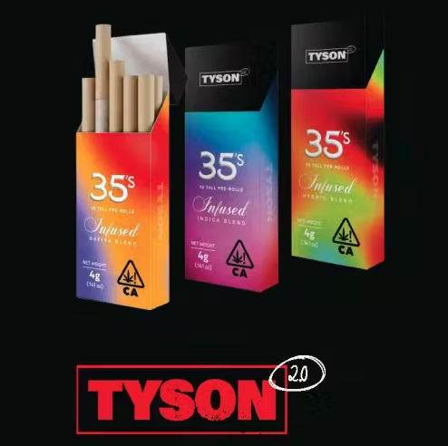 The TYSON 2.0 35’s pre-rolls stand out for their unique features, with each pack containing 10 pre-rolls totalling over 3.5 grams of cannabis, making each pre-roll ideal for a single session. Designed for optimal ease of use, these pre-rolls are long enough to light effortlessly, providing a balanced and comfortable hand feel. Their innovative design eliminates the need for repeated extinguishing and relighting, ensuring a seamless and enjoyable smoking experience from start to finish. Available in a variety of infused offerings, including Sativa, Indica, and Hybrid, these pre-rolls cater to every cannabis enthusiast’s preferences, delivering a tailored and exceptional experience every time.